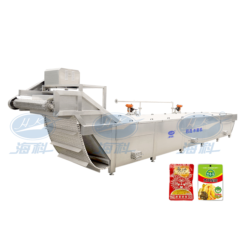 在食品、飲料、制藥等行業(yè)中,要求對一些包裝完畢的產(chǎn)品進(jìn)行水浴式滅菌,被包裝好的產(chǎn)品放在可調(diào)速的不銹鋼網(wǎng)帶上,在傳遞帶的作用下按順序進(jìn)入滅菌箱體內(nèi),經(jīng)由“高溫水為介質(zhì)”殺菌后,再由傳送帶帶入箱體均勻冷卻,從而達(dá)到產(chǎn)品殺菌要求。殺菌、冷卻機(jī)連續(xù)運(yùn)轉(zhuǎn),已滅菌的包裝產(chǎn)品被源源不斷送入下一生產(chǎn)線。